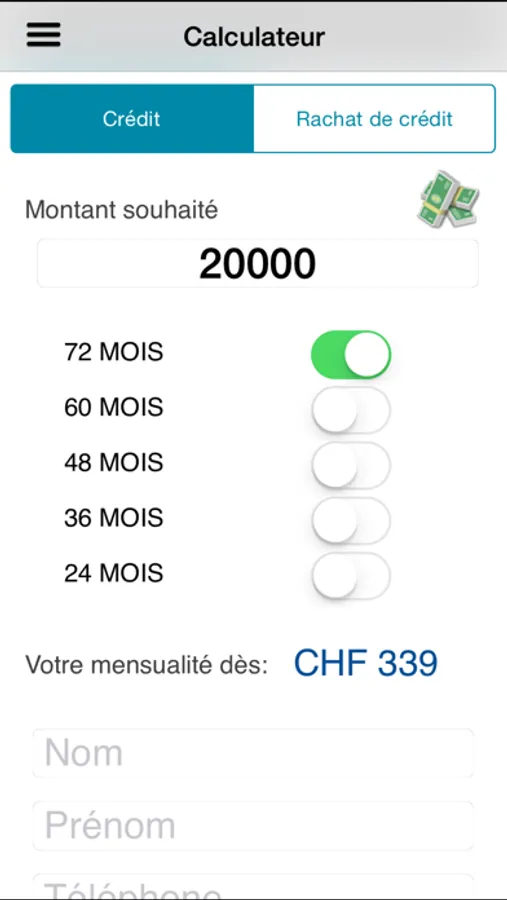 Calculez votre crédit, accédez en un mouvement à votre mensualité