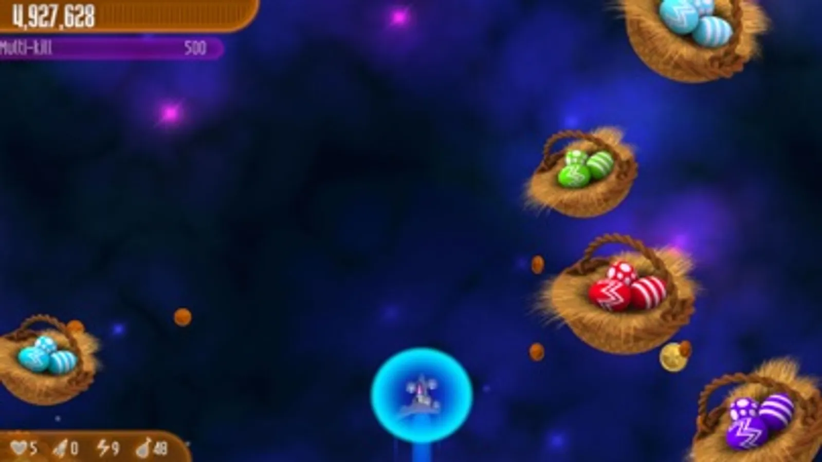 Chickens. For centuries we have oppressed them, grilling, roasting, stewing, and stuffing them in buns. The time has come for us to pay. Intergalactic chickens are invading Earth, seeking revenge for the oppression of their earthly brethren! It's time for you to fight for our ancestral right to omelettes. Will you succeed? Will the future of chicken burgers be secure? Or will you end up as part of the menu in a galactic chicken restaurant?