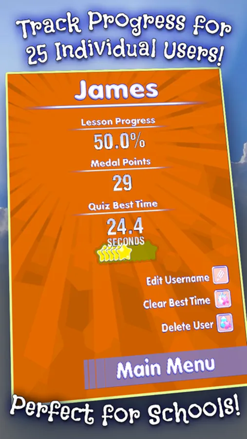 25 User Accounts allow group instructors to track progress individually. Ideal for use with students in a school setting!