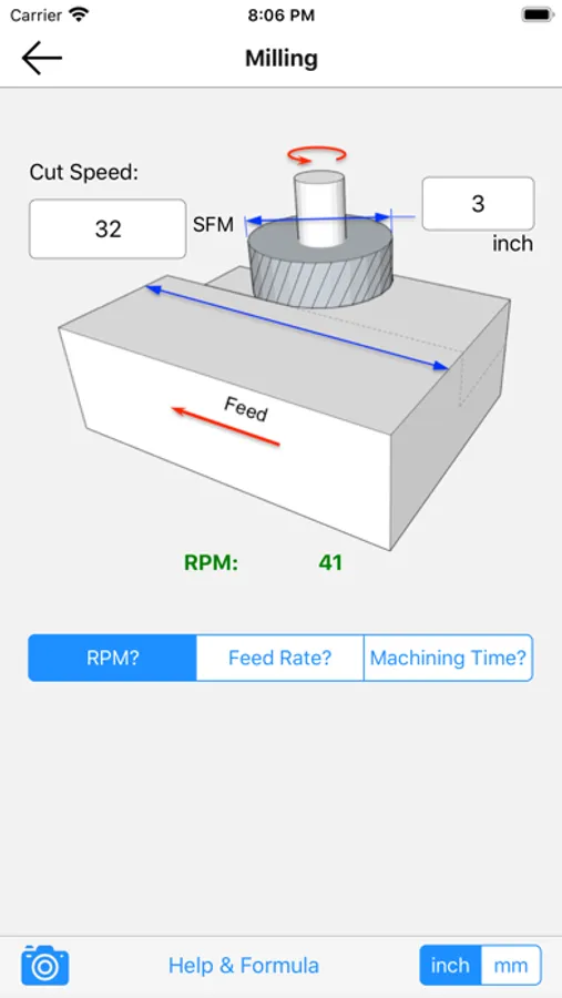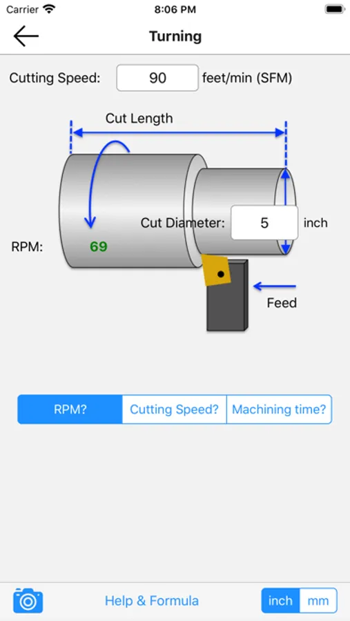 - Calculate Cutting Speed given RPM and Cutting Diameter