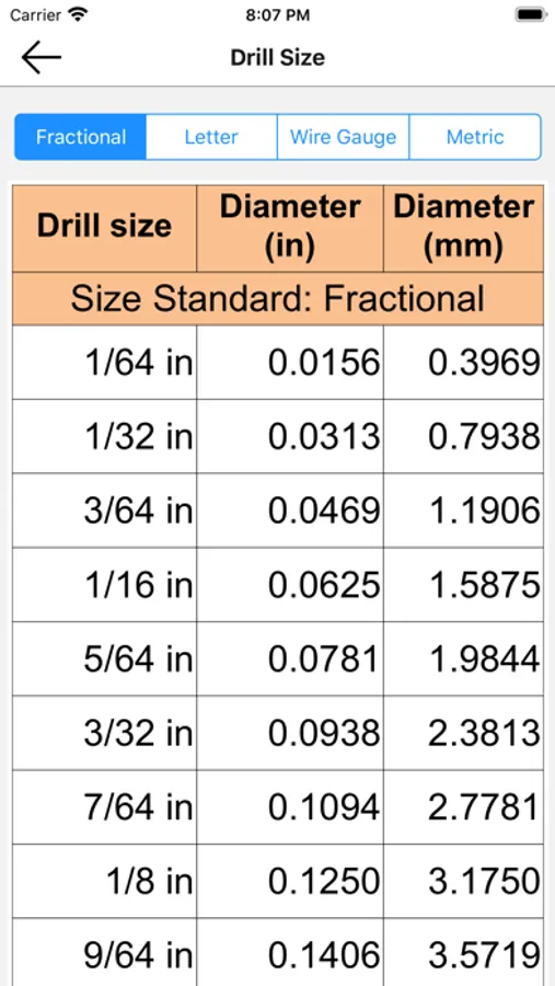 - Fractional, Letter, Wire Gauge and Metric Standards