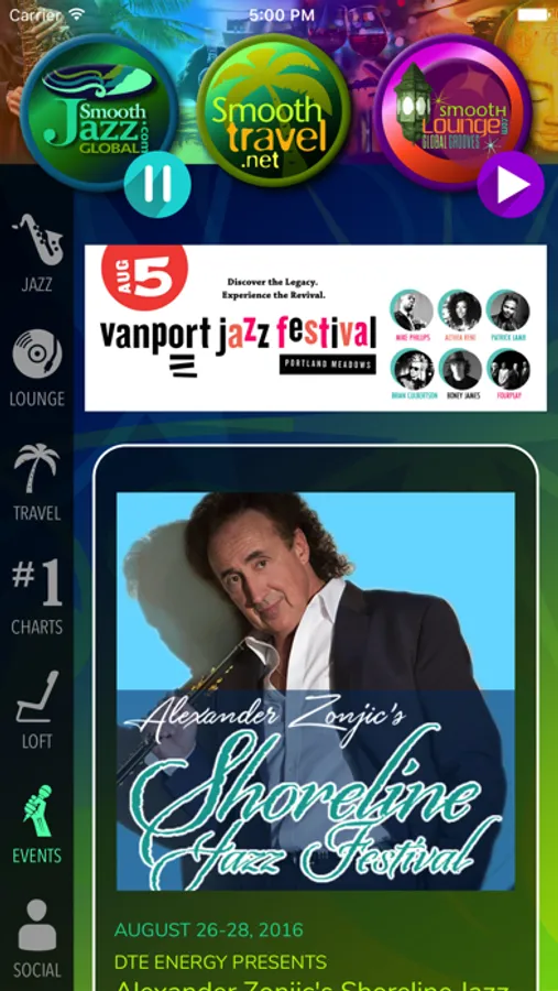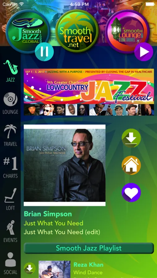 The world’s first Internet jazz radio station, SmoothJazz.com Global, presents a Smooth music and Lifestyle application offering two handcrafted radio stations, an exciting travel portal featuring the world’s hottest jazz festivals, plus a new music Listening Loft, weekly Airplay Charts, jazz videos and more!