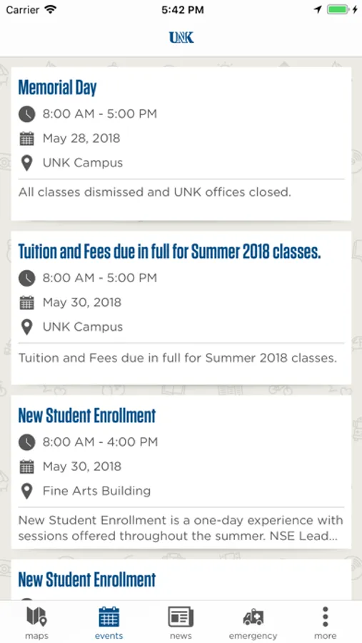 Events – Always know what’s happening on or around UNK. Browse concerts, lectures, exhibits and more.