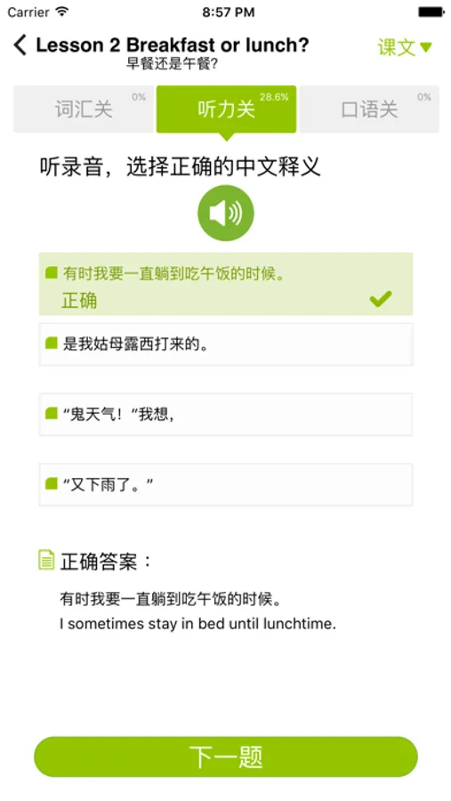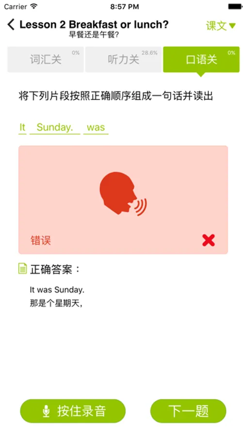 + 口语:引入剑桥智能语音评分系统,复读带打分。