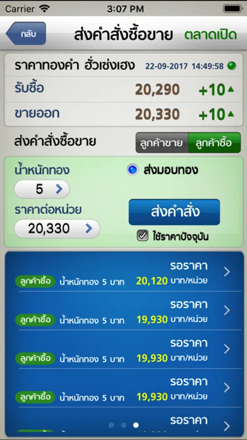 •ตั้งราคาซื้อ-ขายที่ต้องการล่วงหน้า