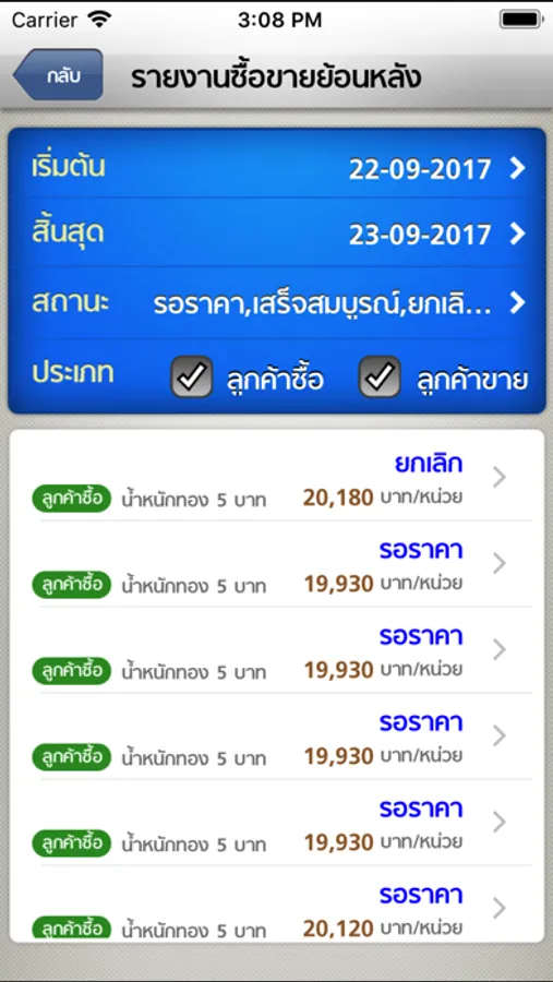 •สามารถดูรายงานการซื้อขายทองคำย้อนหลัง