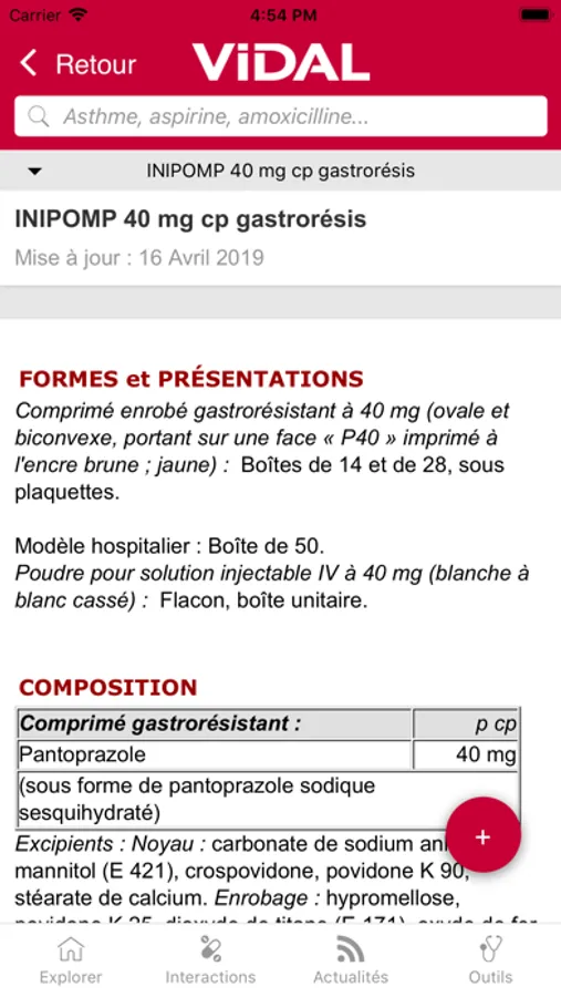 • Une fiche d’information pour + de 11 000 médicaments et 4 000 produits de parapharmacie