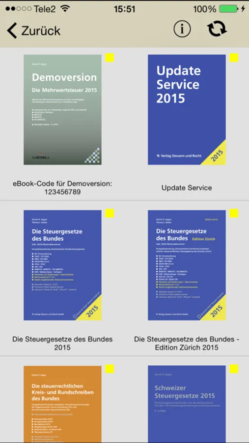Download des aktuellen Jahreskatalogs in den Ordner Verlag Steuern und Recht. Die Kataloge 2015 und älter sind für bisherige Nutzer im speziellen Archivordner 2012-2015 abgelegt. Neue Nutzer finden 2015 und ältere Bücher im normalen Archiv, welches nach Betätigung des "Refresh"-Symbols im Ordner Verlag Steuern und Recht angezeigt wird. Neu werden die aktuellen Jahreskataloge nach erscheinen automatisch in den Ordner Verlag Steuern und Recht geladen und nach Betätigung des „Refresh“-Symbols neben dem normalen Archiv angezeigt.