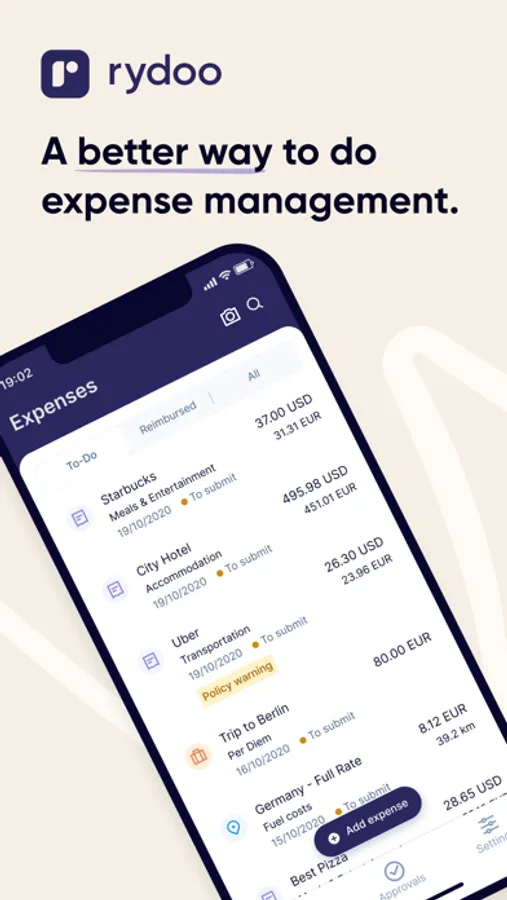 Rydoo is a best-in-class expense management solution that helps employees and finance teams to reduce their expense work to a minimum.