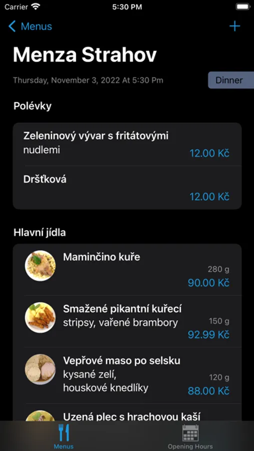 Menzy ČVUT is an application designed for all students, employees and other boarders attending canteens of the Czech Technical University in Prague.