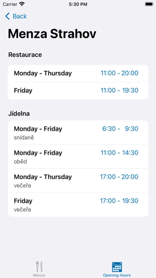 Menzy ČVUT is an official application developed for the Service Facilities Administration of the Czech Technical University in Prague.