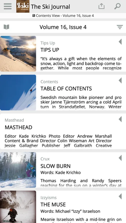 The Ski Journal is the world’s highest quality skiing magazine. Featuring icons of the culture, stunning mountains and outstanding photography, The Ski Journal connects it readers to the best stories, photo galleries, videos and athletes of the sport.