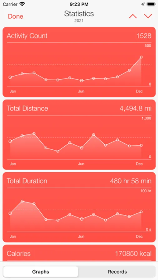 • Study weekly, monthly and yearly statistics and personal records to see your progress over time.