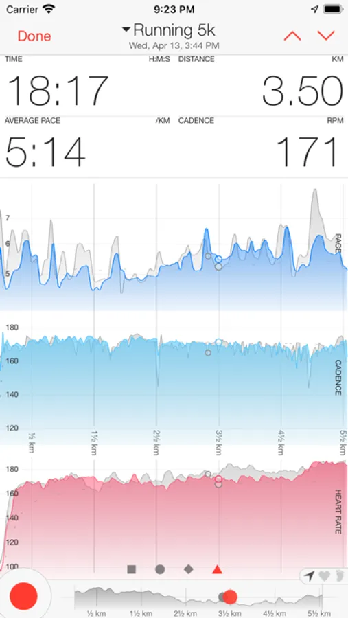 Study your progress and results in detail on your iPhone, both during and after your workout. Graphs and maps can be zoomed, and you can easily navigate to any point along your activity for further examination and comparison to your reference. A wealth of data and statistics are collected about your activities. It's almost as if you had a personal trainer - in your iPhone.
