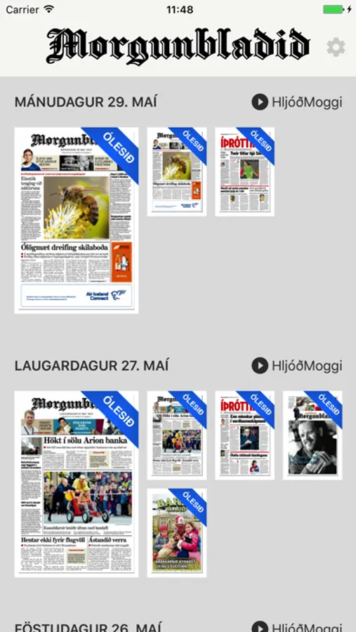 Snjalltækjaforrit Morgunblaðsins. Áskrifendur geta lesið Morgunblaðið á hverjum degi í iPad eða iPhone. Einnig er hægt að hlusta á fréttayfirlit og valdar fréttir og greinar í HljóðMogganum.