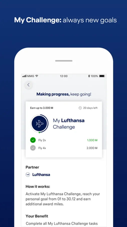 • With My Challenge, you can fill up your mileage account more quickly through personalized challenges that are always tailored to you