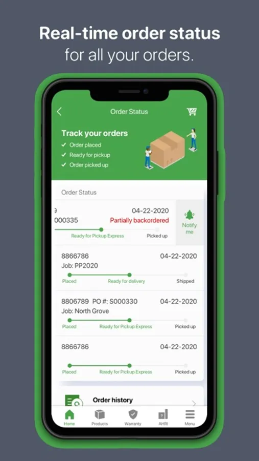 Order status and notifications