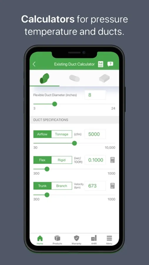 PT calculator, Superheat calculator, and Duct calculators