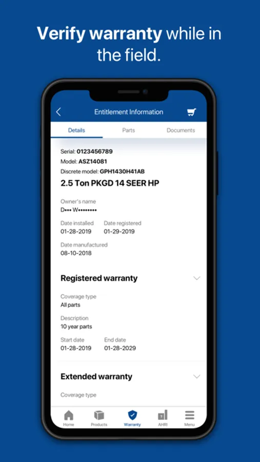* Verify Limited Warranty Registrations while in the field (WARRANTY)