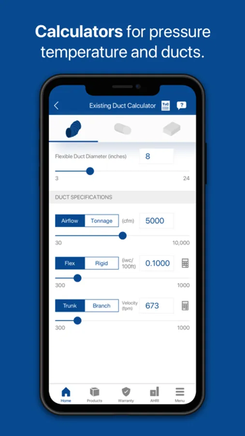 * Duct calculator to help determine duct size, material and specifications for new installations and retrofits (CALCULATORS)