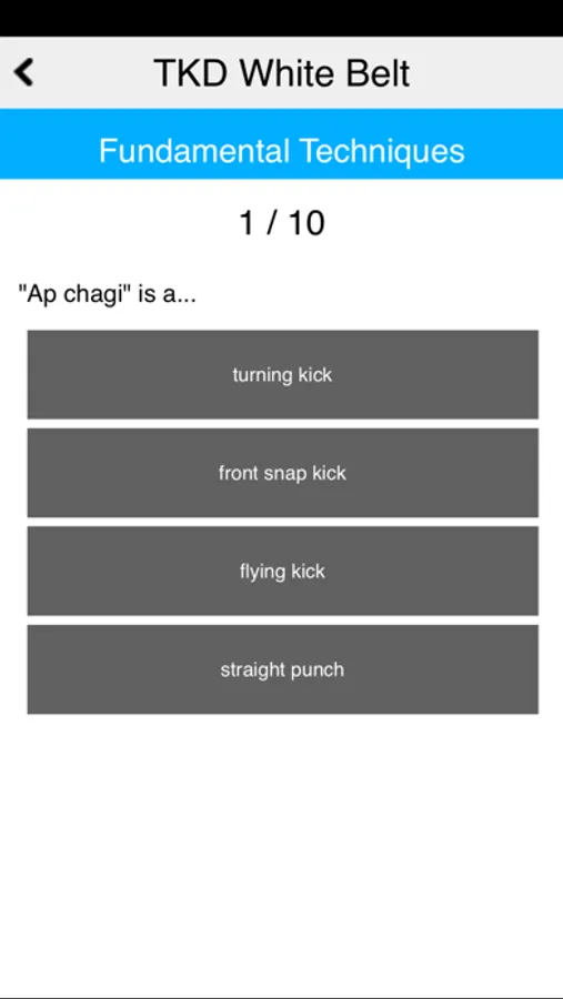 - At the end of each course, test your newly acquired knowledge by playing a Taekwondo QUIZ game!