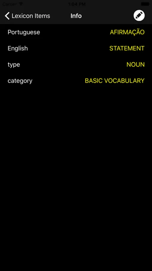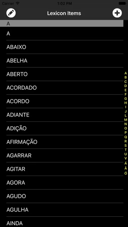 The game comes with a list of over 800 commonly used Portuguese words, and the ability to add new words, as well as group words by category.