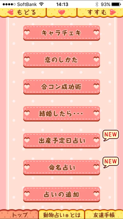 さらに「登録順」「名前順」「動物順」に並び替えが出来るので占いたい人が簡単に見つかります!!