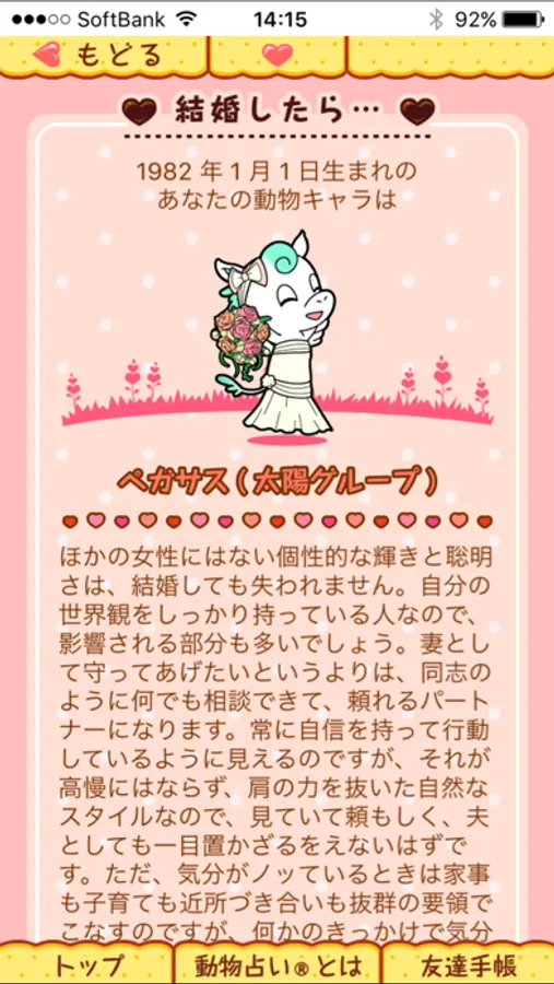 「動物占い(R)」公式アプリ第4弾【恋愛動物占い(R)】は恋のはじめから結婚までばっちり占って楽しめる恋愛系アプリです!