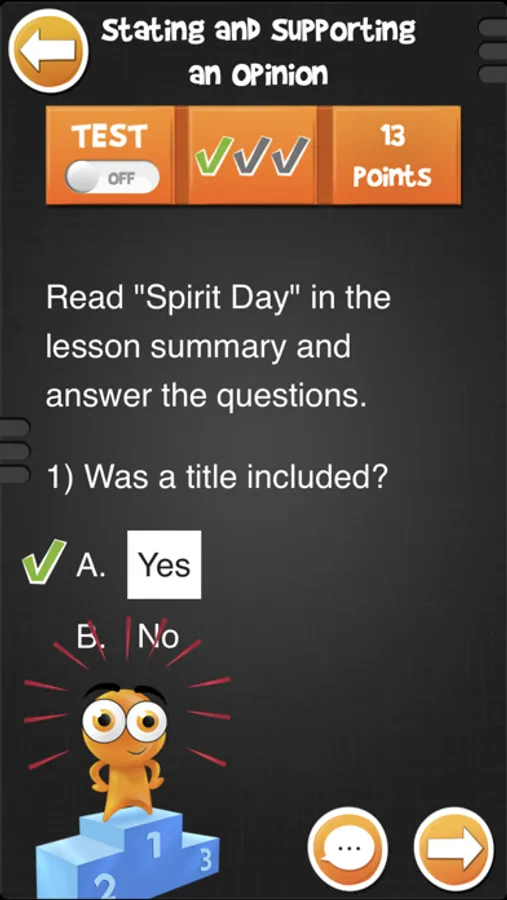 ‣ "A terrific app that covers a lot of ground concept-wise. This app combines a no-frills approach to content while still providing the user with an exciting learning experience. The mascot is adorable and keeps kids on task with lots of encouragement and there is a lesson summary available when needed."