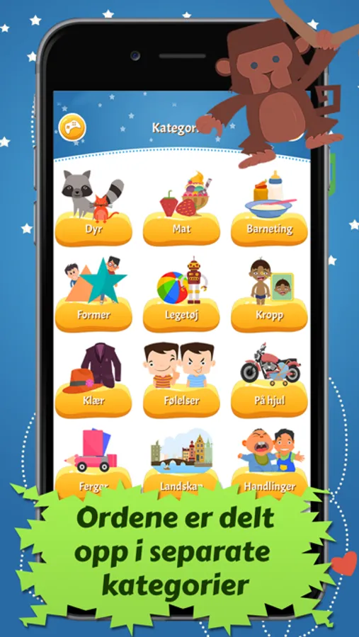 Ordene er delt opp i separate kategorier og ordene som ditt barn liker best kan legges til favoritter. Du vil aldri få din iPhone eller iPad tilbake!