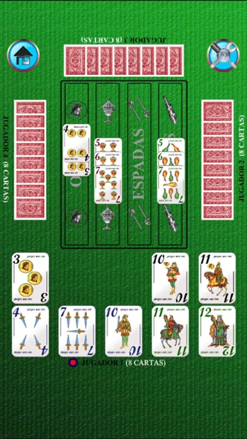 Comienza el primer turno el jugador que posea el cinco de oros. A partir de ahí, cada jugador podrá poner las cartas correlativas a las ya puestas (en la primera mano el 4 o el 6 de oros) o un cinco de otro palo, y así sucesivamente.