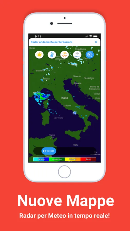 Con la geolocalizzazione attiva le previsioni saranno sempre con te ovunque ti trovi e grazie al nuovo Radar, potrai monitorare la situazione meteorologica in tempo reale!