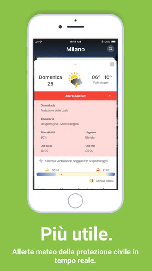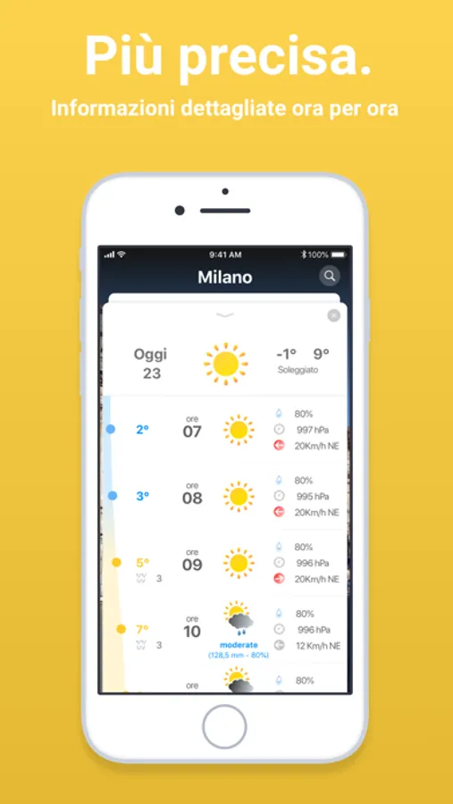 Meteo.it, l’app con previsioni meteo precise e affidabili grazie ai nostri algoritmi previsionali innovativi. Scarica gratis l’app Meteo.it e imposta il meteo delle tue località preferite, puoi scegliere tra oltre 20.000 località in Italia e nel mondo.