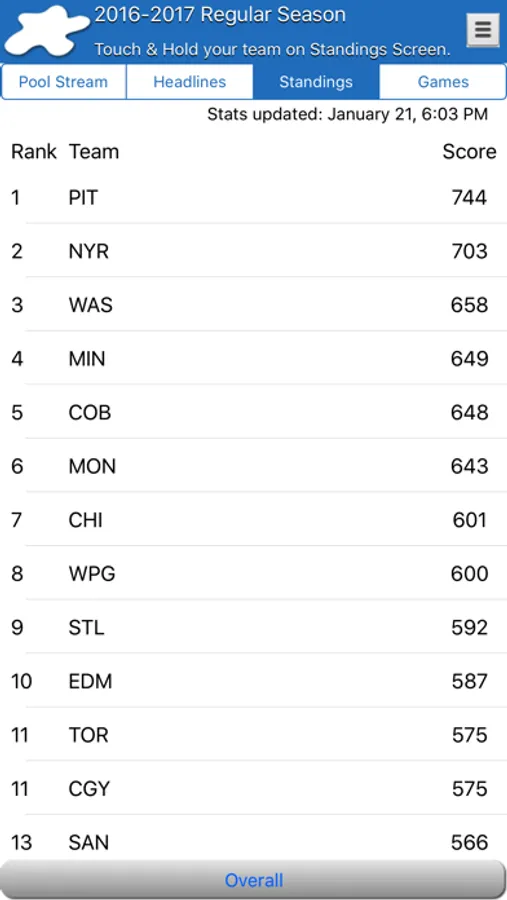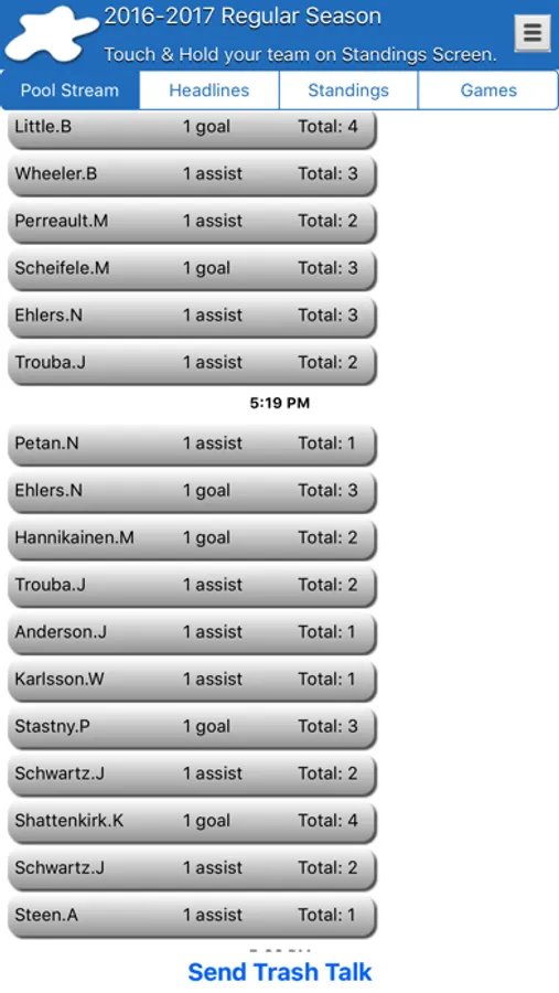 Pool Stream is a real time stream of what's happening in your pool, enabling real time stats + forum trash talk. Also, you may optionally receive notifications when your stats are updated!