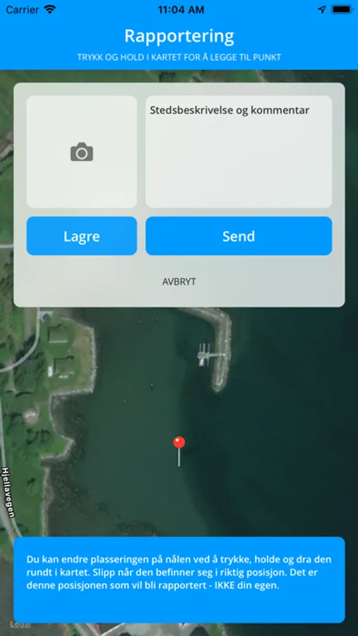 Appen logger dine GPS-data, så alt du trenger å gjøre er å ta et bilde av garnet om du har mulighet til det og skrive en kort kommentar om hva du ser. Vi setter pris på om du også skriver inn ditt telefonnummer i tilfelle vi trenger å komme i kontakt med deg.