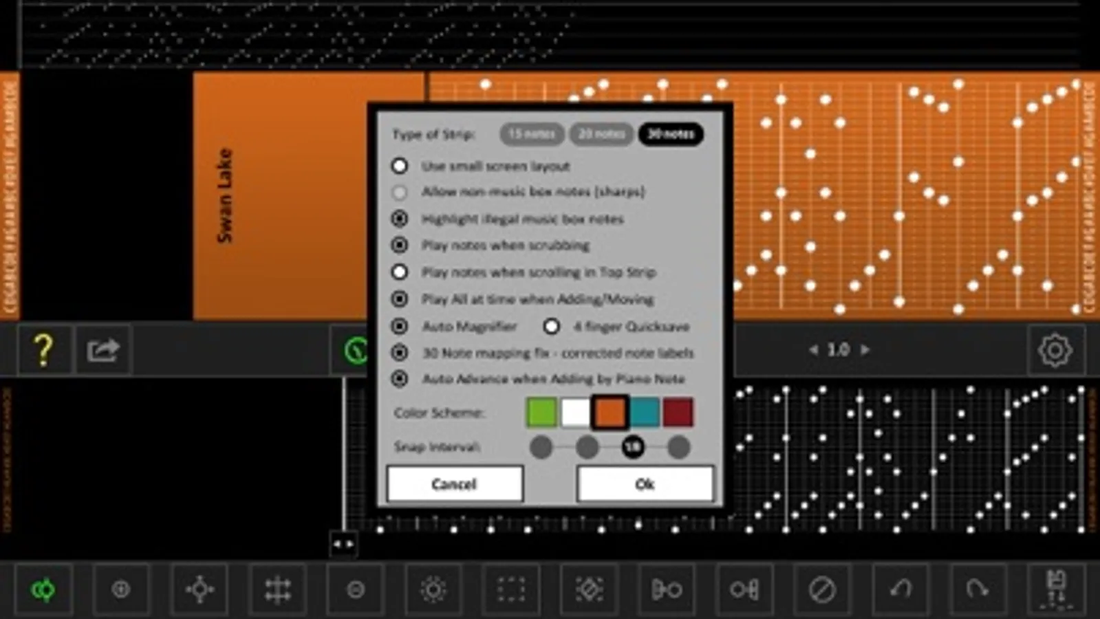 Designed to aid composing your own music prior to punching the paper strips for Music Boxes, MBC allows you to compose, preview, play, save and share your creations via Email or iTunes file transfer.