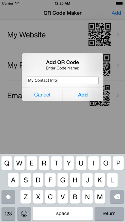 Create a barcode for your business or for a personal use for free! QR Code Maker allows you to create barcodes in varying sizes and save them to your photo gallery!