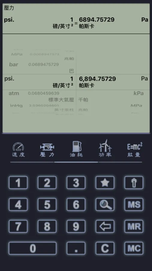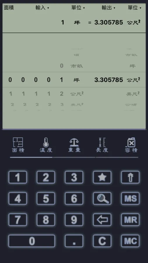 从单位换算器切换到计算器时, 等待输入状态下的计算器会自动导入单位换算器的换算结果。 从计算器切换到单位换算器时, 单位换算器会自动导入计算结果至欲换算单位。