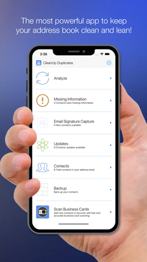 Cleanup Duplicate Contacts will clean up your mobile address book within seconds and you'll be amazed. This app is the ultimate contact cleaner.