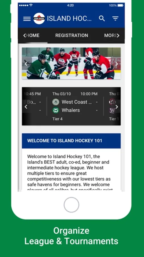 Run your hockey league or tournament using HC League & Tournament Manager. Players can view their league game schedule, standings, and stats all from the app.