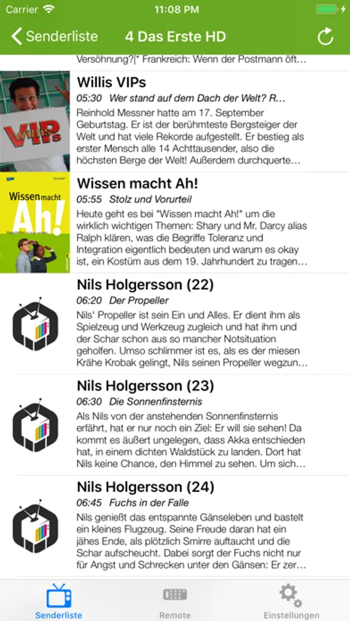 - EPG Informationen für ausgewählte Sender.