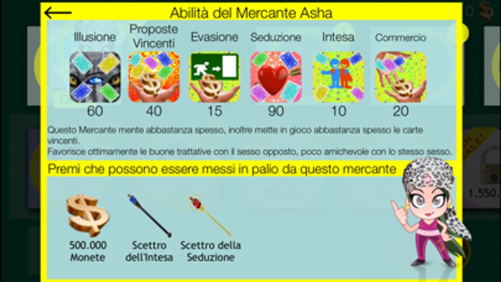 Il mercante conosce i premi e cercherà di farti offerte valide o no.