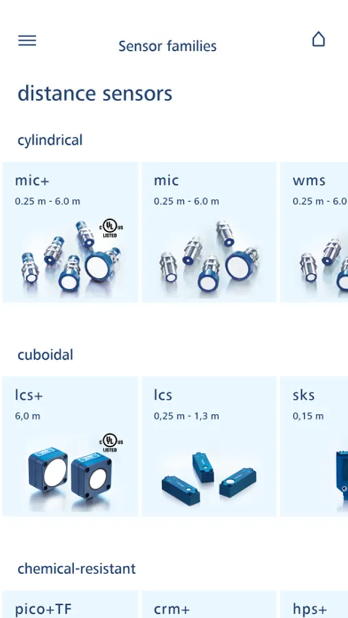 Become acquainted with sensor families and its associated sensors. The app contains both highlights and detailed specifications and respective user manuals.