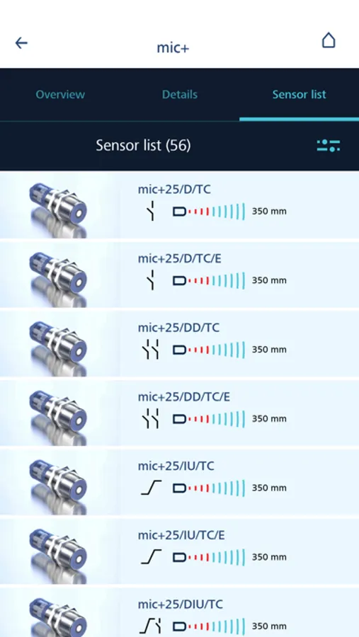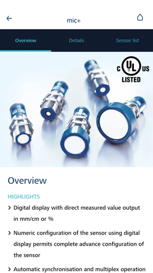 Choose directly your appropriate ultrasonic sensors for your application or select with filter settings at the sensor search your sensor from the whole sensor program. The app provides detailed sensor information and users manuals.