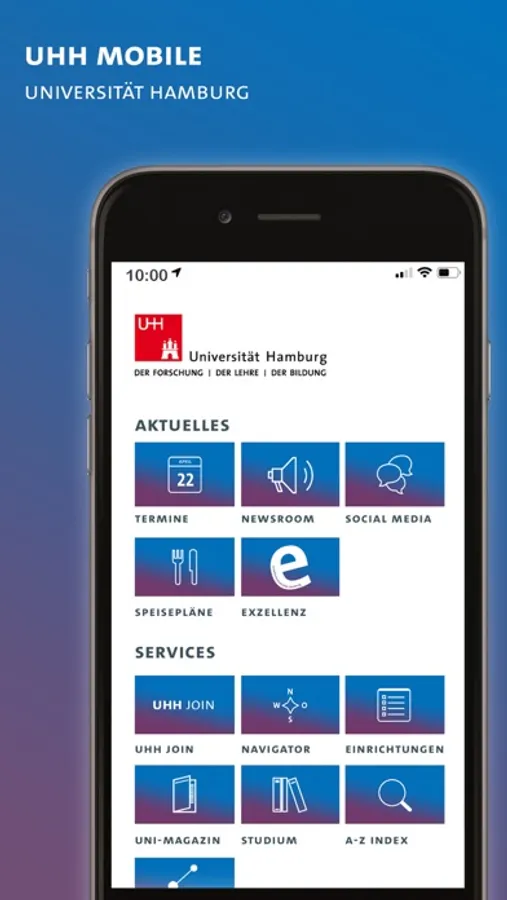 „UHH mobile“ bietet einen schnellen Zugang zu den mobilen Serviceleistungen der Universität: