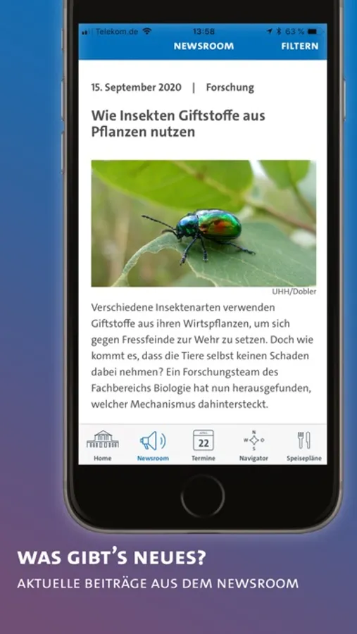 Was gibt’s Neues? Die App bietet Zugriff auf alle aktuellen Beiträge aus dem Newsroom der Universität.