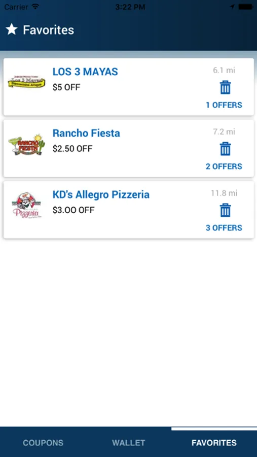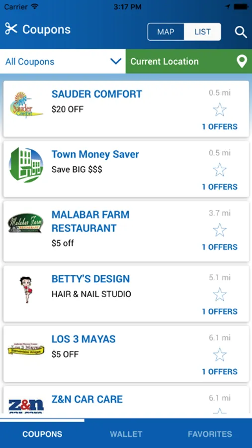 Star your Favorite businesses to easily access offers from the places you visit most frequently.