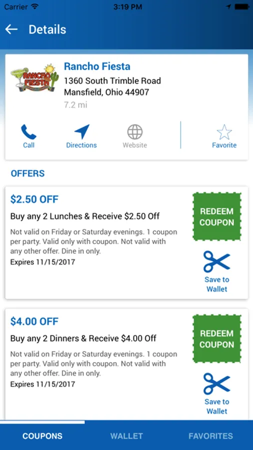 Save coupons to the Wallet to conveniently access and redeem them later.