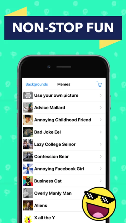 - Pick from a selection of awesome memes including "Overly Attached Girlfriend" and "Grumpy Cat"