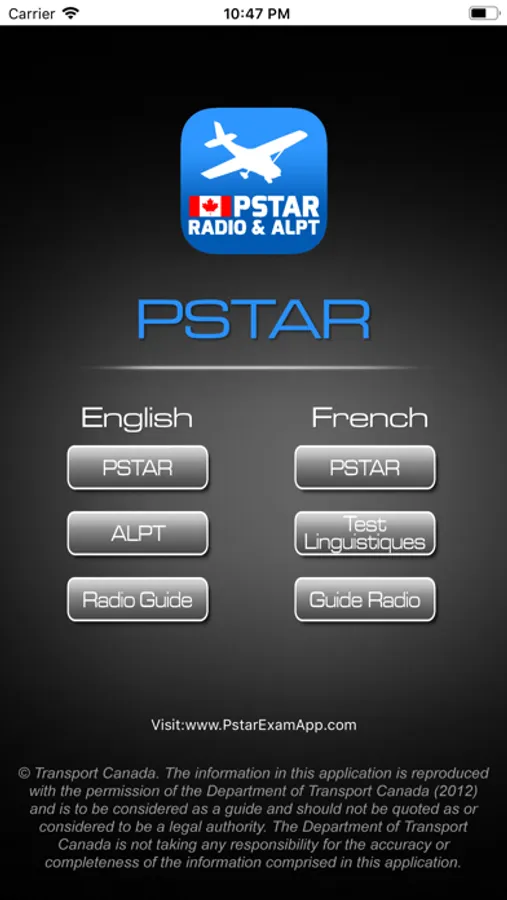 Before a student pilot in Canada can go for his/her first solo flight, the Transport Canada PSTAR (Pre-Solo Test about Air Regulations) exam has to be completed. It is an exam about Air Regulation. This app has all 189 questions in the database which are taken from the official Transport Canada Study Guide, TP11919. The PSTAR app will be updated on a regular basis to ensure the most current questions.